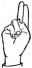 На ћирилици написано ЕВГЕНИЈЕ БРЕСНОПОЉАЦ састоји се из 19 слова [?]. Исписано ћириличном једноручном азбуком за глувонеме: